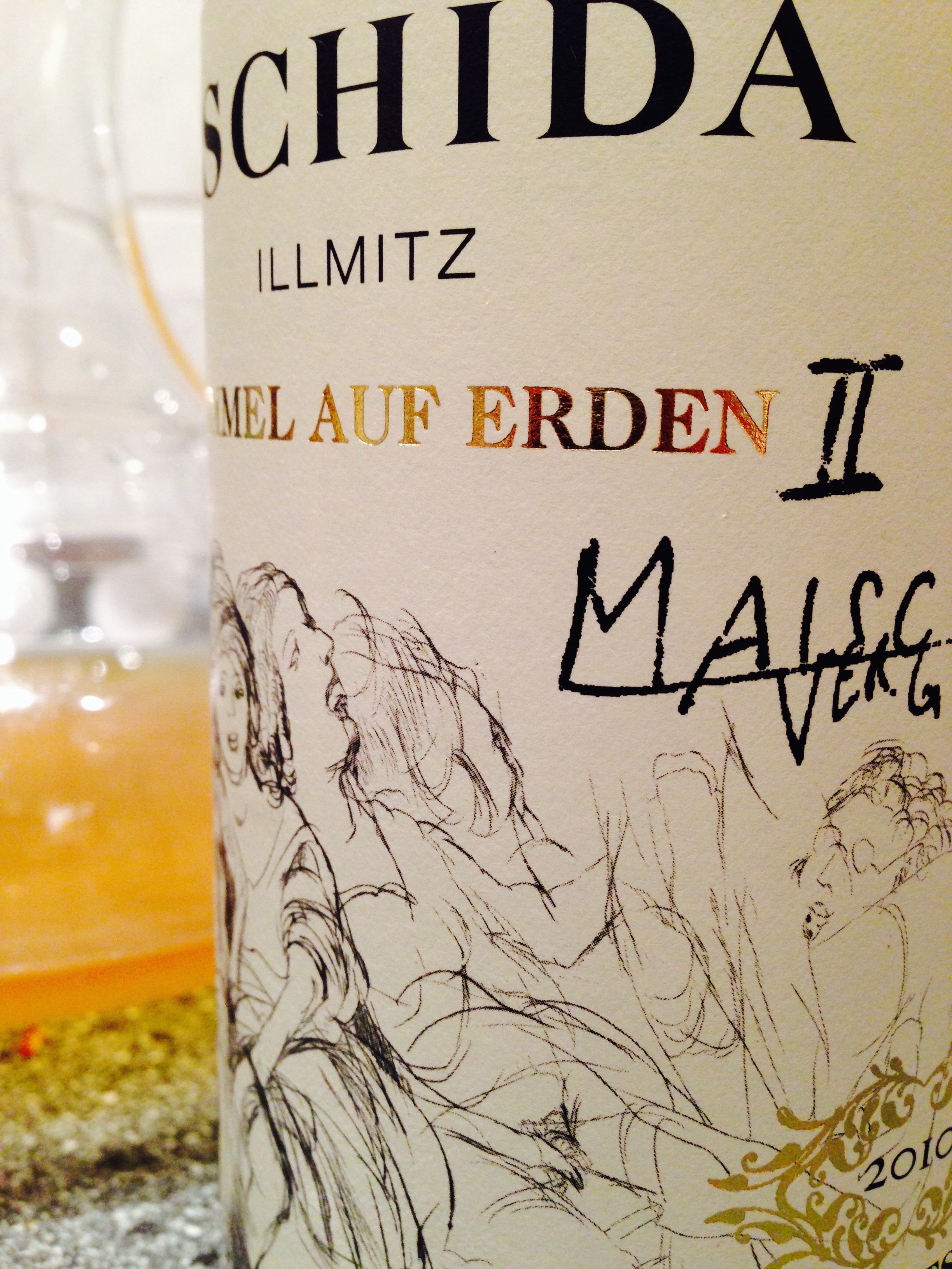 Ich erinnere mich beim Lesen des Namens im PDF von Calistoga an Graf Adelmanns „Das Lied von der Erde“ – als Klassikfan, begeistert insbesondere auch für die Musik Gustav Mahlers, dachte ich: „Was für ein arroganter Name!“, und kam nicht umhin eine Flasche davon zu kaufen. Sehr geiler Name! Der Versuch ging ärgerlich schief (im Gefrierfach vergessen, „aufgefroren“, teure Schusseligkeit und Eile) und endete sozusagen gleich mit dem ersten Satz von Mahlers Sinfonie, dem „Trinklied vom Jammer der Erde“, nur dass ich ohne Trank mit dem Jammer allein war. Ein zweiter Versuch, zusammen mit meinem Vater (eine Quelle meiner Musikliebe und auch Mahlerfan), ist später geglückt. Ein toller Wein, aber es bleibt beim einem arroganten Namen…